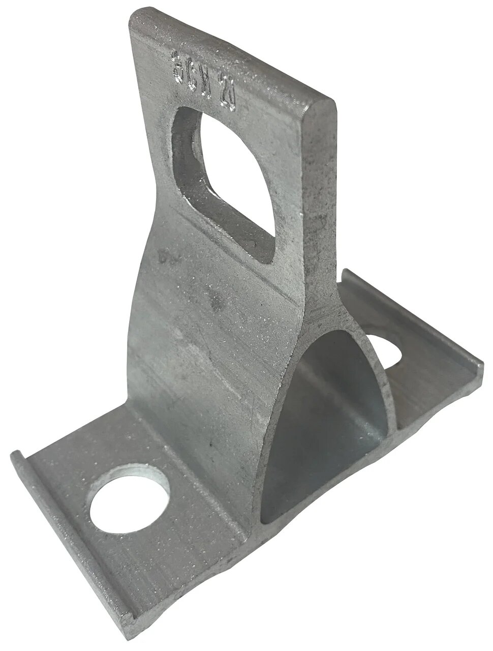 Обеспечивает крепление одного или двух анкерных зажимов на опоре или стене здания. Крепление осуществляется двумя болтами М14 или М16 или при помощи двух полос металлической ленты 20 мм.
