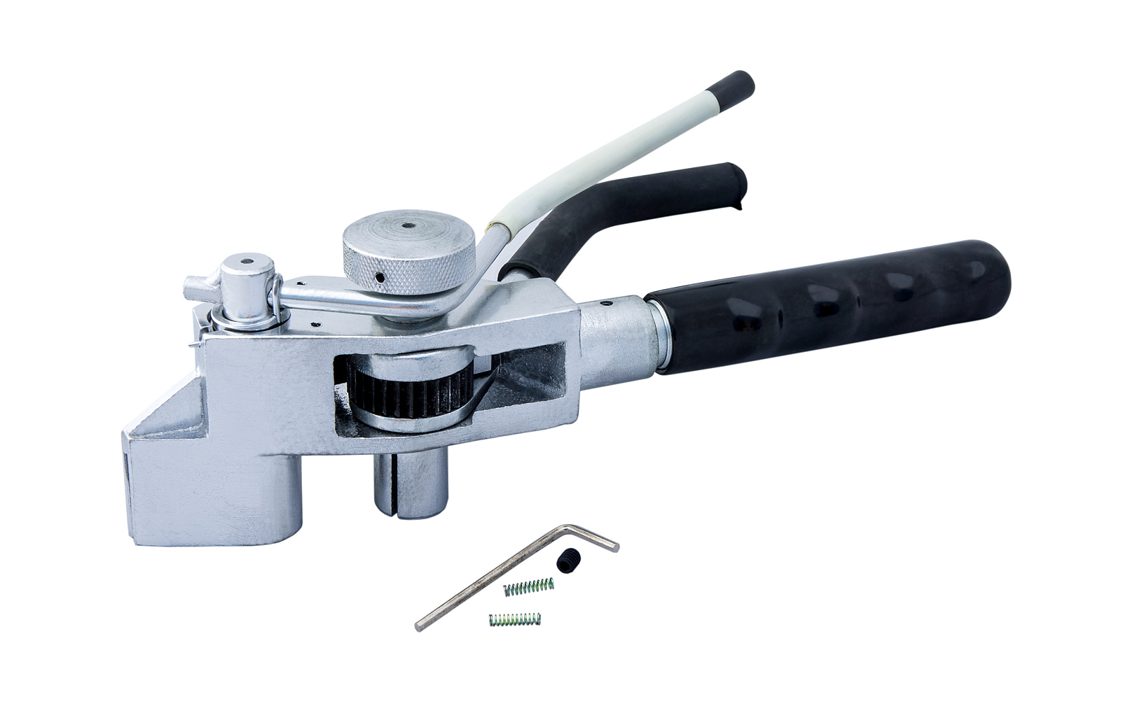 Затягивает стальную ленту с помощью храпового механизма с усилием до 400кг, тем самым сокращает время монтажа. Так же позволяет использовать инструмент одной рукой .