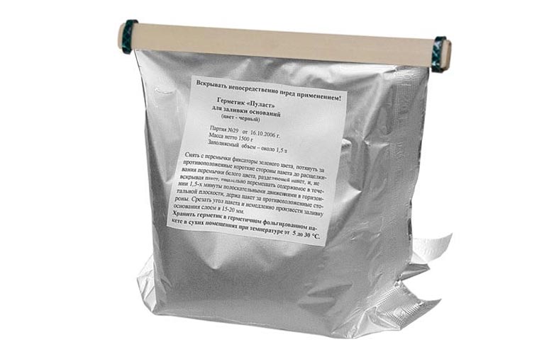 Состоит из двух компонентов – А и Б. Компоненты герметика упакованы в единый фольгированный пластиковый пакет, разделенный съемной перемычкой на две секции. Герметик имеет черный цвет и обладает хорошей текучестью при температурах не ниже -10 °С. Заливка герметика производится при температуре окружающей среды от -10 до +45 °С.